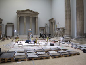 The exhibition of the Collection of Antiquities spread over the three central halls: The hall of Hellenistic architecture, the hall of the Altar of Pergamon and the Hall of Milet. Guiding principal of the complete repairs is the preservation resp. the restoring of the original exhibition concept from 1930. For the handling of war damages, curatorial intended changes of the exhibition as well as for previous restorations conclusive solutions regarding the preservation of the historic monuments need to be developed.