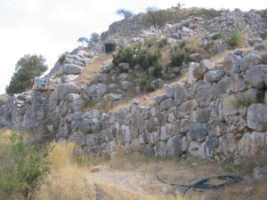 The study gives a general outlook on the problems which face the fortification walls of Mycenae in relation to their present condition for preservation. The long-term experience of planning and executing conservation works in Mycenaean Tiryns and in similar preservation projects are respected for establishing guidelines. The study shows some typical examples of main construction damages and maintenance problems, addresses preparational steps to be undertaken for conservation concepts, describes methods and technologies for stabilization and conservation works, establishes the equipment and machines necessary for execution and names the personnel staff and its need of specially skilled handicrafts and workmen. The study is engaged for the stabilization and conservation treatment of the fortification walls from south-east to north-east, encircling about 670 m in length. Because of its very damaged condition and extremely difficult accessibility, the eastern part of the citadel is out of question for consideration at this moment. Objectives of the study program are also to improve the system and conditions of pathways for visitors and to change the appearance of some wall sections for a better understanding of its original construction.