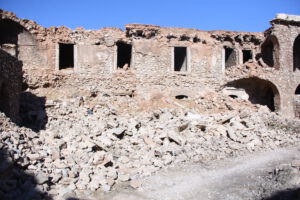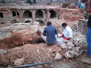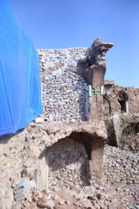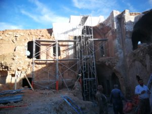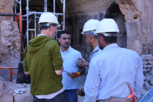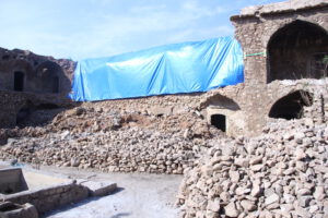 The aim of the emergency stabilisation work was to prevent further losses to the historic building fabric. Components at risk of collapse were secured with reversible interventions. In collaboration with local craftsmen, the deterioration of the khan was halted and time was gained to prepare for a more comprehensive conservation programme.