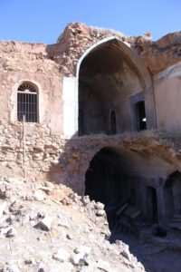 The Grand Khan, dating back to 1861-2 AD must be considered as one of the key buildings representing old Koya. It provides a typical example of a Khan of that period and is one if not the only preserved example in the region of northern Iraq. The building, however partly ruined, is still rich of interesting details, like the lintels and reveals made of so called „Mosul Marble“ and partly decorated with encarvings. Former repairs and stabilization measures are visible in many parts of the structure.