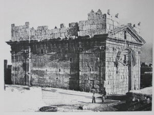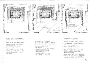 During the building research and documentation of the upstanding Roman Temple in the center of Dmeir, a small city about 50 km north east of Damascus, the idea of an environmental design concept for the Temple’s surrounding public open space was born. The original ground level of the Temple is situated up to 5 m beneath the surrounding street level and should be accessible for visitors. Therefore, construction protection measures must be undertaken. The city center should shelter public facilities like coffee shop and terraces for guests and tourists and with a combination of supporting walls and staircases for access it would become an attraction pole for visitors. The supporting constructions against the higher street level could be executed in different shapes or even contain green elements as well as the terraces could offer benches and shadow from planted trees. The upstanding relics of the Roman Temple are in principle well preserved, but the stone walls show traces of different kind of use in history so a general restoration campaign should be carried out.